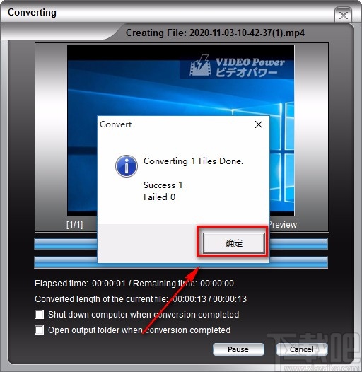 9.视频画面裁剪结束后,界面上就会出现一个转换成功的提示窗口,我们点击窗口右下角的“确定”按钮,就可以完成全部的操作步骤。