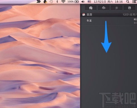 4.此外,我们也可以在电脑桌面上打开侧边栏通知中心,并在通知中心中向下拖动鼠标,如下图所示。