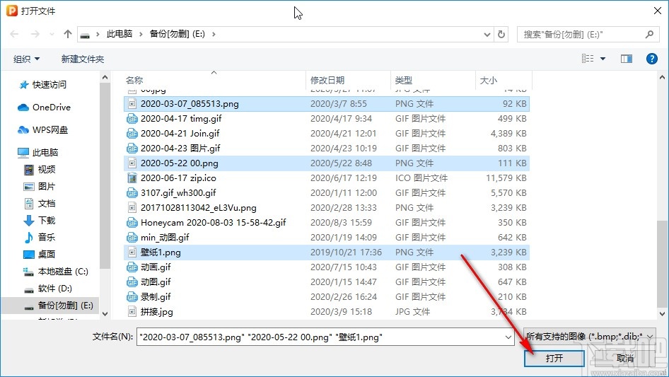 3.接下来下一步就打开一个选择文件的界面了,在这个界面中我们选中目标图片文件,全部选中之后点击右下角的打开按钮。