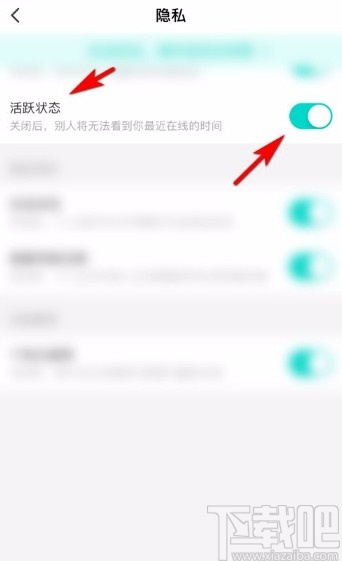 5.然后就会跳转到隐私页面,我们在页面上找到“活跃状态”选项,点击该选项后面的开关按钮将其关闭。