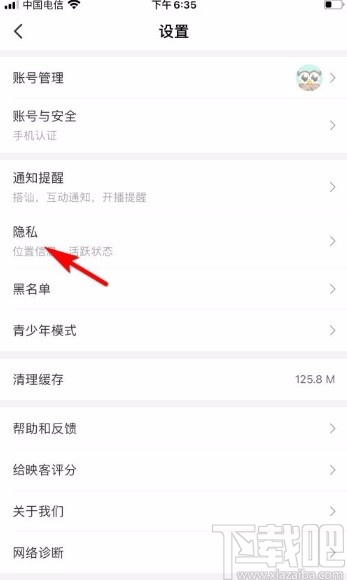 4.接下来就会进入到设置页面,我们在页面上找到“隐私”选项,点击这个选项就可以进行下一步操作。
