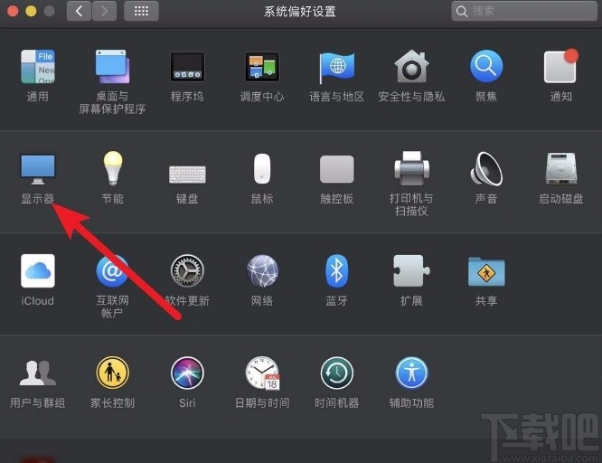 2.然后界面上就会出现一个系统偏好设置页面,我们在页面上找到“显示器”选项,点击该选项就可以了。