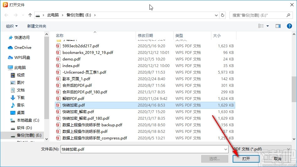 2.点击打开这个选择文件的界面之后,在界面中选中目标文件之后,点击这个界面右下角的打开按钮即可。