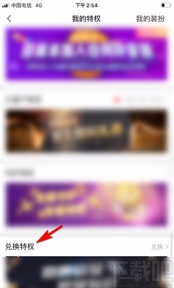4.然后就能进入到我的特权页面,我们在页面上找到“兑换特权”选项,点击该选项即可。