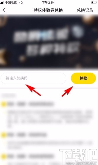 5.最后就会进入到特权体验券兑换页面,我们在页面上输入兑换码,再点击“兑换”按钮,即可成功兑换体验券了。