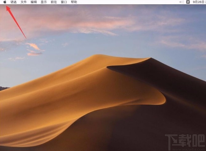 2.接着在桌面的左上角找到苹果图标按钮,我们点击该按钮,其下方就会出现一个下拉框,如下图所示。