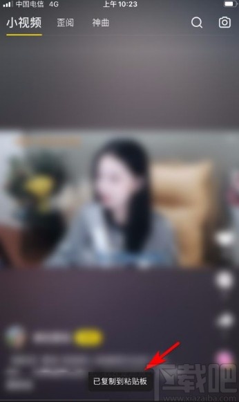 5.完成以上所有步骤后,我们就成功复制短视频的链接了,这时候界面下方会出现“已复制到粘贴板”的提示,如下图所示,大家可以作为参考。
