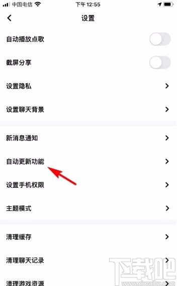 3.然后在设置页面中,我们在页面上找到“自动更新功能”选项,点击该选项再进行下一步操作。