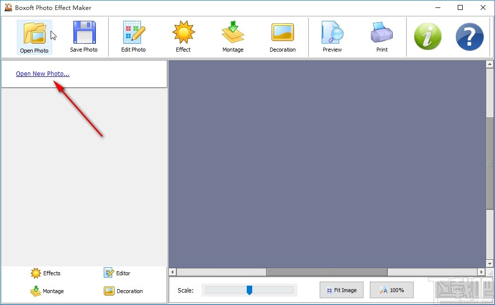 1.首先第一步我们点击打开软件之后,在界面左上方的选项中找到Open New Photo这个选项,找到之后点击进去。