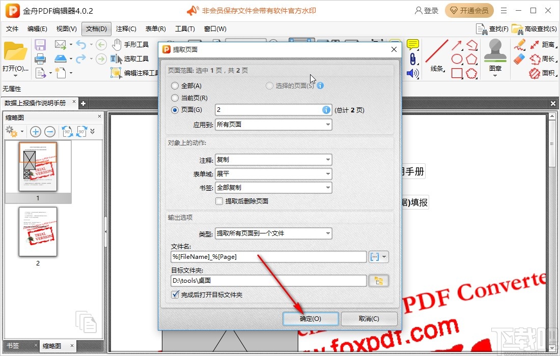8.最后选择好这个输出路径之后,我们点击面板界面下方的这个确定按钮就可以确定进行提取页面的操作了,等待操作完成即可。