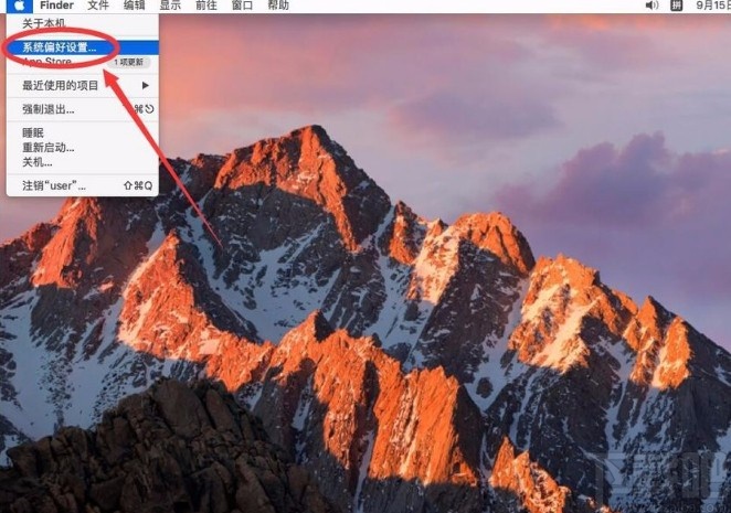 2.接着在苹果图标按钮下方就会出现一个下拉框,我们在下拉框中找到“系统偏好设置”选项并点击即可。