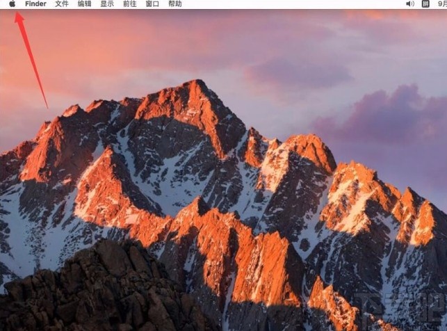 1.首先打开电脑,我们在电脑桌面的左上角找到苹果图标按钮,点击该按钮再进行下一步操作。