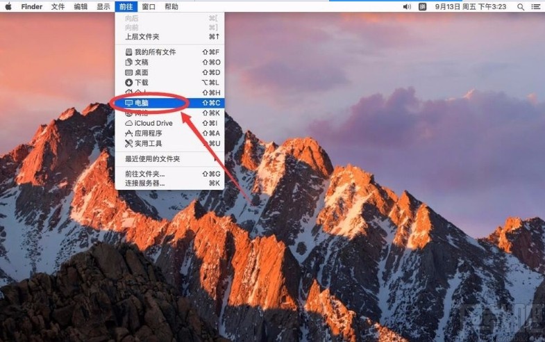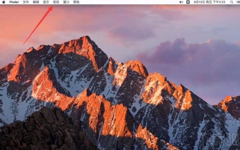 1.首先打开电脑,我们在电脑桌面的顶部找到“前往”选项,点击该选项,其下方就会出现一个下拉框。