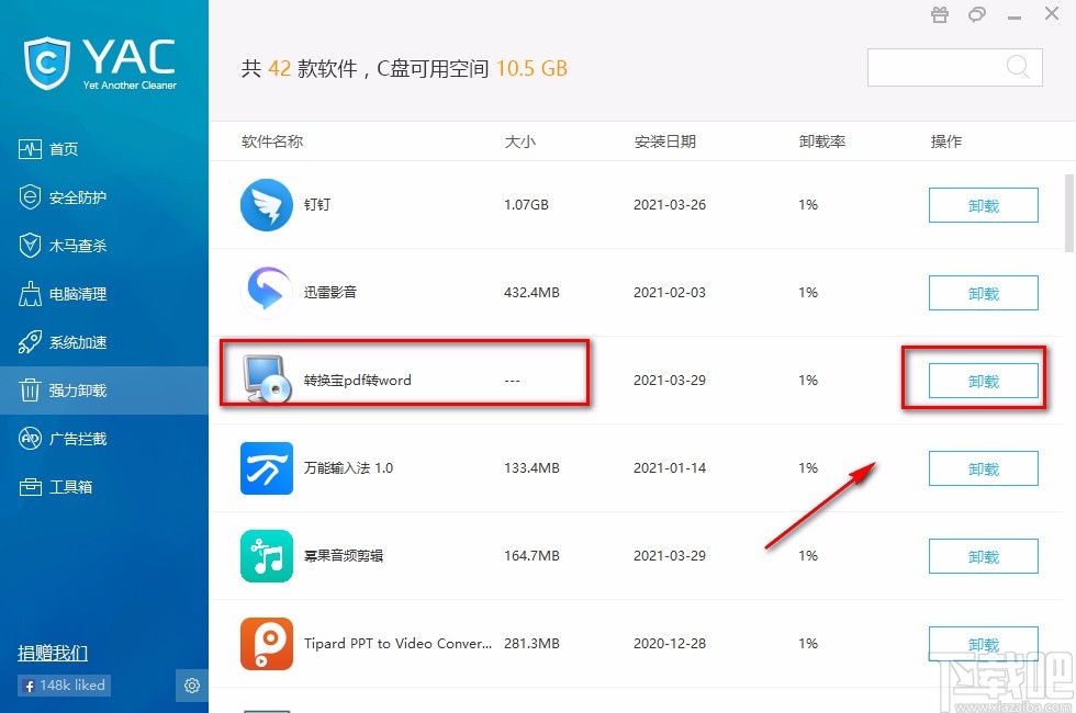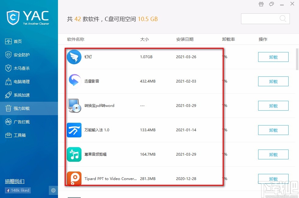 Yet Another Cleaner是一款综合性很强的电脑系统优化软件,该软件拥有清爽直观的操作界面,可以帮助用户对电脑系统进行木马查杀、垃圾清理、广告拦截等处理。此外,还可以使用这款软件来卸载程序应用。相信很多朋友和小编一样,有时候会不小心将一些流氓软件下载到电脑中,这些软件无法从电脑中卸载。在这种情况下,我们就可以使用这款软件来卸载应用。那么接下来小编就给大家详细介绍一下Yet Another Cleaner卸载软件的具体操作方法,有需要的朋友可以看一看并收藏起来。