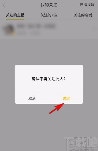 6.完成以上所有步骤后,界面上就会出现一个窗口,我们点击窗口右下角的“确定”按钮,就可以成功取消关注主播。