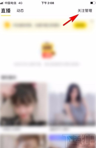 3.进入到关注页面后,我们在页面右上角找到“关注管理”选项,点击该选项就可以进行下一步操作。
