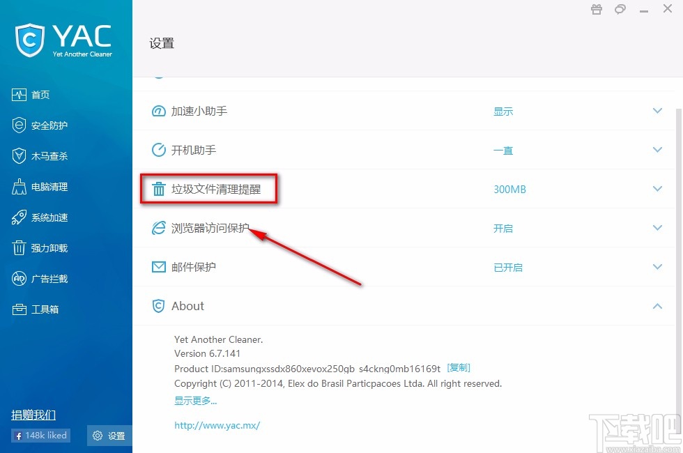 Yet Another Cleaner是一款非常专业的病毒查杀软件,该软件可以帮助用户的电脑系统不受病毒的侵害,从而保持电脑运行的稳定性。我们在操作电脑的过程中,不可避免的会在电脑中产生一些垃圾数据,这些垃圾数据是比较占用电脑内存的,如果我们长期不加以清理,就会拖慢电脑的运行速度。因此,我们可以设置垃圾清理提醒,当电脑中的垃圾文件达到一定量时,软件就会提醒我们清理垃圾。那么接下来小编就给大家详细介绍一下Yet Another Cleaner设置垃圾清理提醒的具体操作方法,有需要的朋友可以看一看。