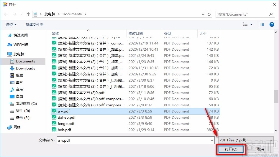 2.然后界面上就会出现一个文件添加页面,我们在页面中选中需要进行旋转操作的PDF文件,再点击页面右下角的“打开”按钮就可以了。