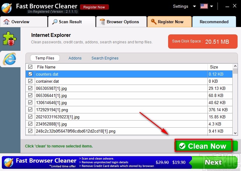 5.接下来在界面右下角找到“Clean Now”按钮,我们点击该按钮就可以进行下一步操作,如下图所示。