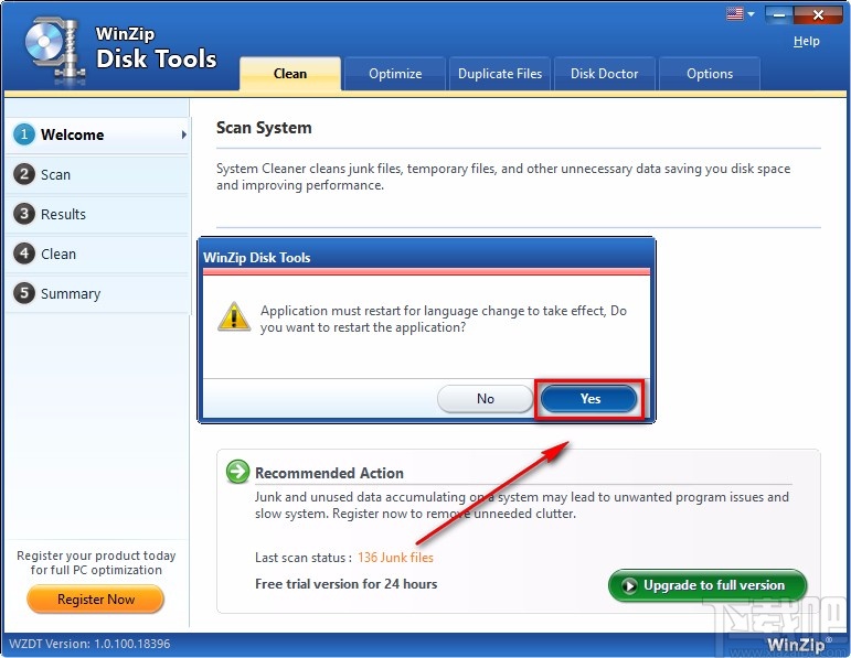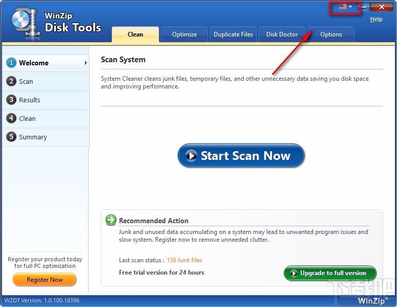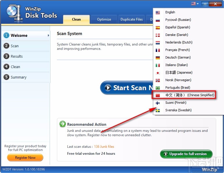 市面上有很多电脑优化软件,其中WinZip Disk Tools是一款相当好用的软件,该软件界面简单友好,可以帮助用户清理电脑垃圾和磁盘,从而达到优化系统的目的。而且这款软件还支持中多种语言,其中就包括中文和英文。我们将这款软件下载到电脑上的时候,常常会发现软件的操作界面是英文,这加大了该软件的使用难度,因此我们需要掌握设置中文的方法。那么接下来小编就给大家详细介绍一下WinZip Disk Tools设置中文的具体操作方法,有需要的朋友可以看一看并收藏起来。