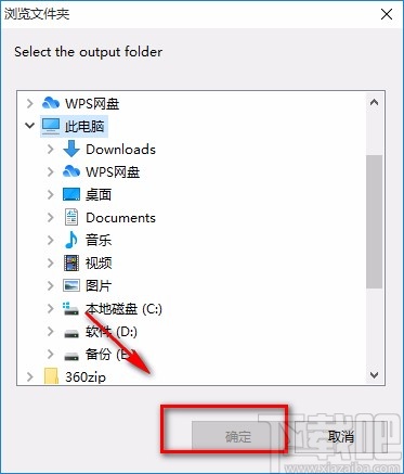 3.然后界面上就会出现一个浏览文件夹对话框,我们在对话框中选中文件的保存位置,再点击对话框底部的“确定”按钮就可以了。