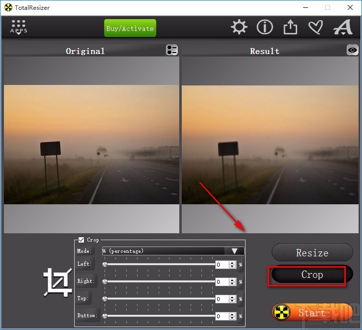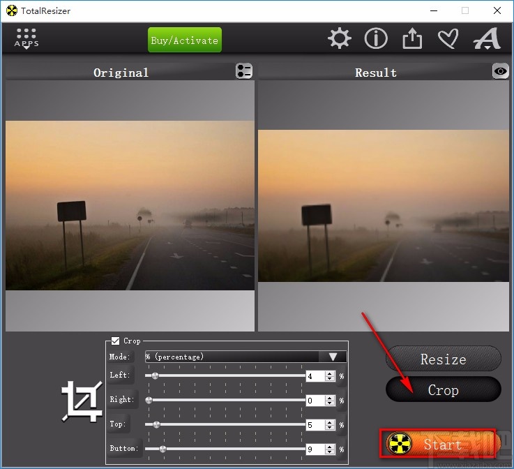 6.随后在界面右下角找到“Start”按钮,我们点击该按钮就可以开始裁剪图片文件了,如下图所示。