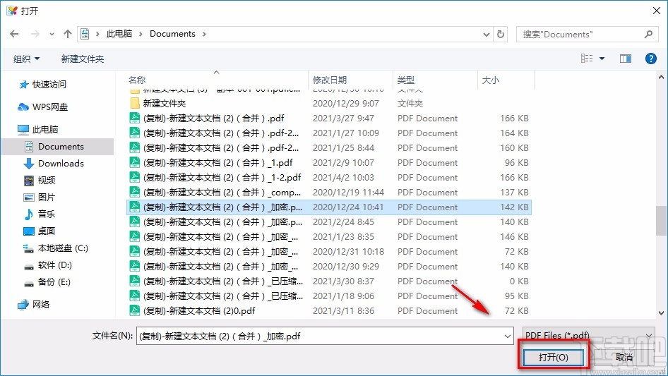 2.接着在文件添加页面中,我们将需要解锁的PDF文件选中,再点击页面右下角的“打开”按钮就可以了。