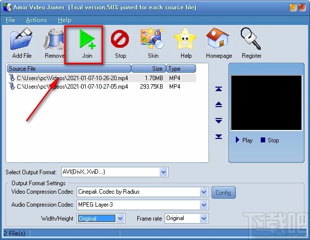 7.完成以上所有步骤后,我们在界面上方找到“Join”按钮,点击该按钮就可以开始合并视频了。