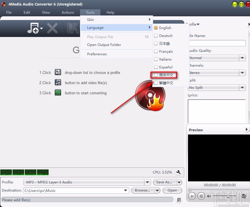 以上就是小编给大家整理的4Media Audio Converter设置中文的具体操作方法,方法简单易懂,有需要的朋友可以看一看,希望这篇教程对大家有所帮助。