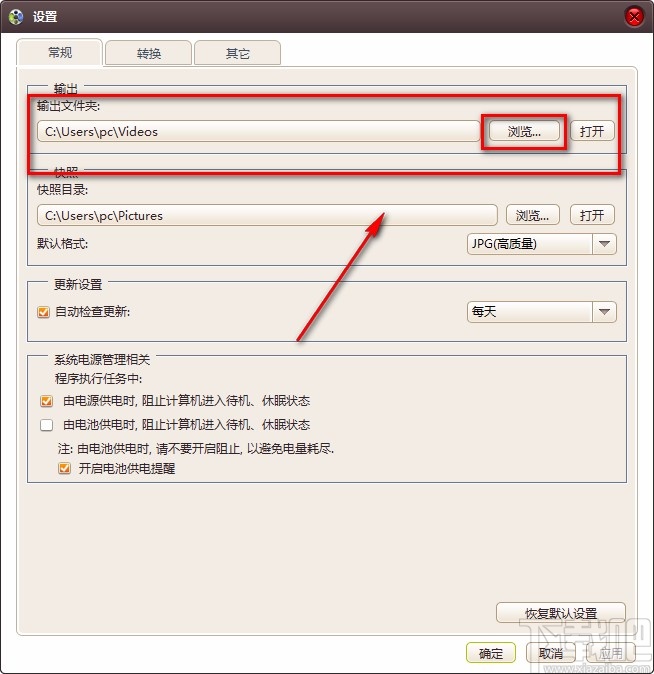 4.接下来在设置页面中,我们在页面上方找到“输出文件夹”选项,该选项后面有一个“浏览”按钮,点击它即可。