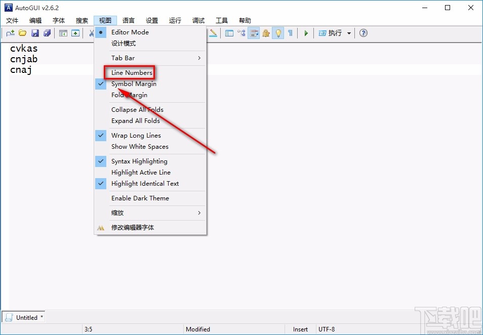 AutoGUI是一款相当好用的开源GUI设计脚本,这款软件拥有清爽简单的操作界面,采用自动GUI编程技术,可以自动嵌入代码和录制脚本,功能十分强大。我们在使用这款软件编辑代码的时候,有时候会发现代码前面没有显示行号,这不便于我们查找代码,因此需要将行号显示出来。但是这款软件专业性非常强,有很多小伙伴都不知道怎么对其操作。所以接下来小编就给大家详细介绍一下AutoGUI显示行号的具体操作方法,有需要的朋友可以看一看并收藏起来,希望这篇教程对大家有所帮助。
