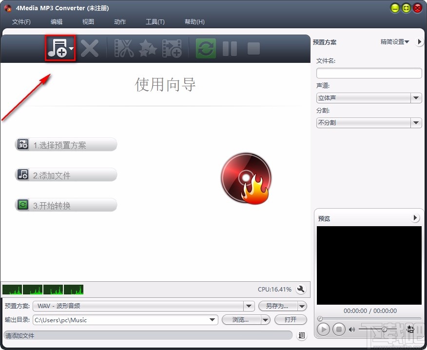 1.首先打开软件,我们在界面左上角找到下图所示的文件添加按钮,点击该按钮就可以了,如下图所示。