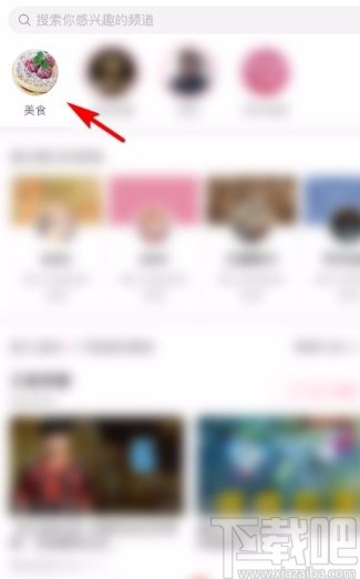 2.进入到频道页面后,我们找到位于页面上方的各种频道选项,根据自己的需要进行选择即可,比如小编选择“美食”,点击该选项就可以进行下一步操作。