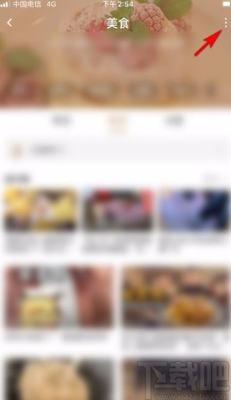 3.接着就会进入到美食频道,我们在页面右上角找到三个小点按钮,点击该按钮就可以进行下一步操作。