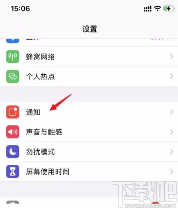 2.接着在设置页面中,我们在页面上找到“通知”选项,点击该选项就能切换到通知页面。