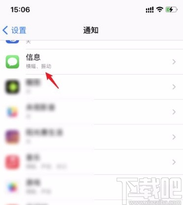 3.进入到通知页面后,我们在页面上找到“信息”选项,点击该选项就可以进行下一步操作。