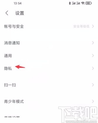 3.随后在设置页面中,我们在页面上找到“隐私”选项,点击这个选项就能跳转到隐私设置页面。