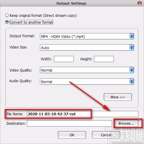8.随后在窗口下方找到“File Name”选项,在该选项后面的文本框中输入文件名称,再点击窗口右下角的“Browse”按钮设置视频的保存位置。