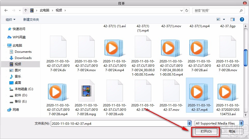 2.接着在文件添加页面中,我们将需要进行剪切操作的视频选中,再点击页面右下角的“打开”按钮即可。