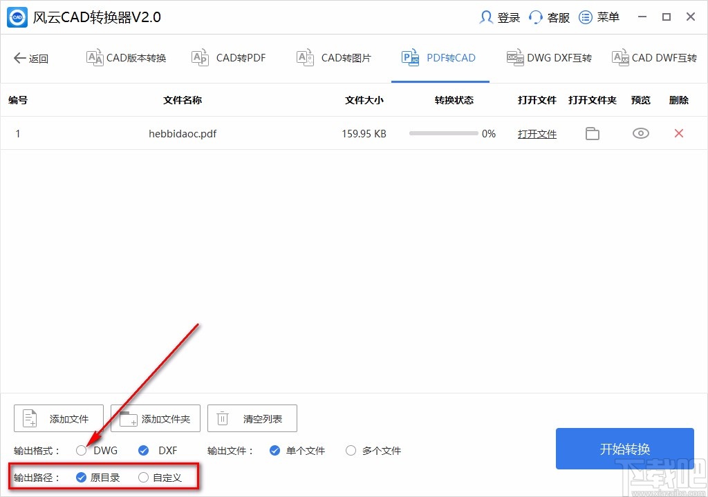 风云CAD转换器是一款非常优秀的格式转换软件,该软件拥有齐全的格式转换功能,不仅可以将PDF与CAD进行相互转换,还具备将CAD转为图片等功能。相信很多朋友都知道,PDF文件与CAD文件都需要在专门的编辑器中进行编辑处理,如果我们想要在CAD编辑器中处理CAD文件,就需要对其进行格式转换,而这款软件就能满足我们的需要,并且操作起来也很简单。鉴于很多朋友不会对其操作,那么接下来小编就给大家详细介绍一下风云CAD转换器将PDF转为CAD的具体操作方法,有需要的朋友可以看一看。