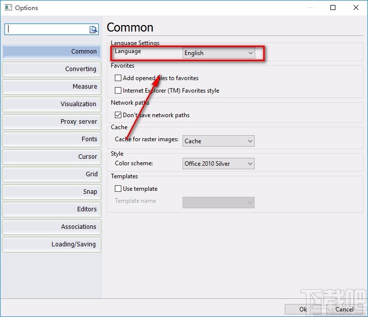 4.然后界面上就会出现一个设置窗口,我们在窗口上方找到“Language”选项,其后面有一个下拉按钮。