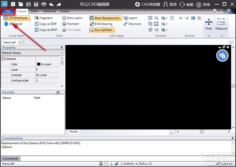 2.接着在界面左上角找到“File”选项,我们点击该选项,其下方就会出现一个下拉框,如下图所示。