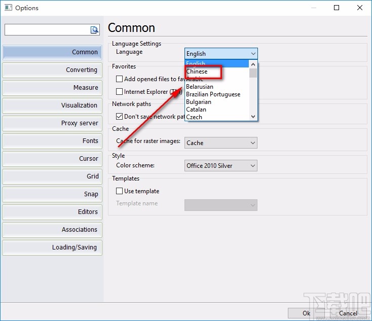 5.接下来我们点击“Language”选项后面的下拉按钮,并在下拉框中选择“Chinese”选项,如下图所示。