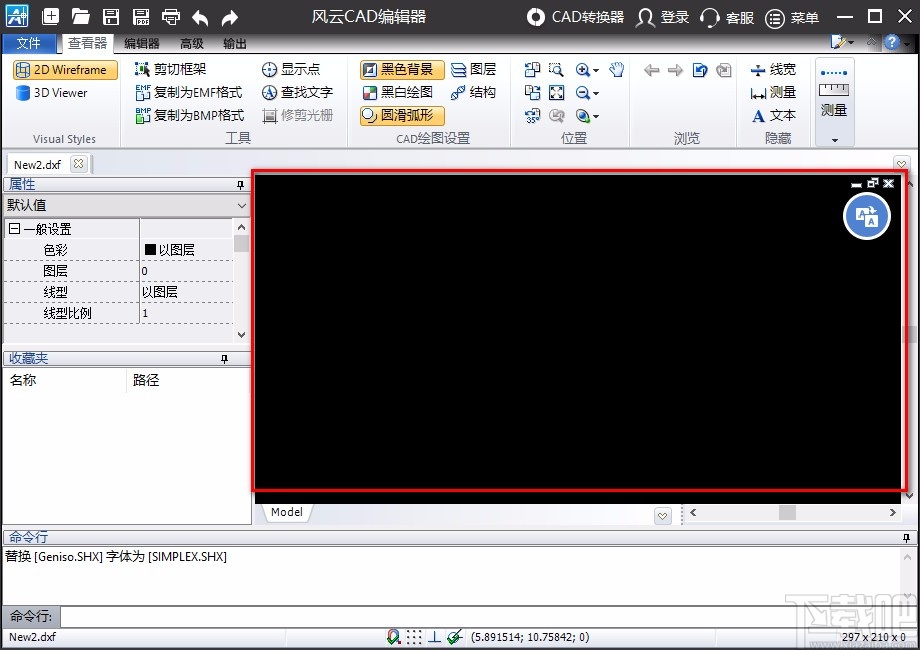 3.完成上一步后,我们就成功新建CAD文件了,如下图所示,这时候就可以在编辑器中制作CAD图纸。