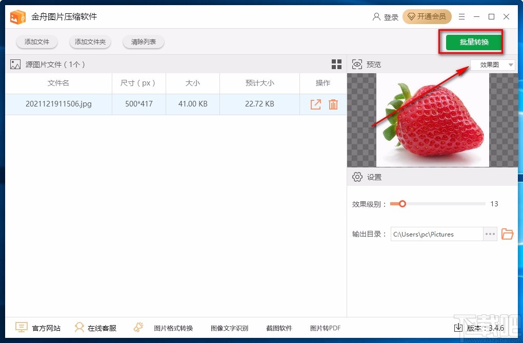 6.随后在界面右上角找到“批量转换”按钮,我们点击该按钮就可以开始压缩图片了,如下图所示。