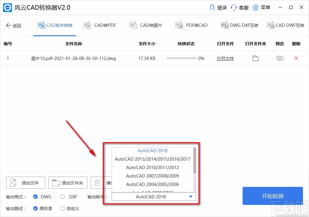 以上就是小编给大家整理的风云CAD转换器转换CAD版本的具体操作方法,方法简单易懂,有需要的朋友可以看一看,希望这篇教程对大家有所帮助。
