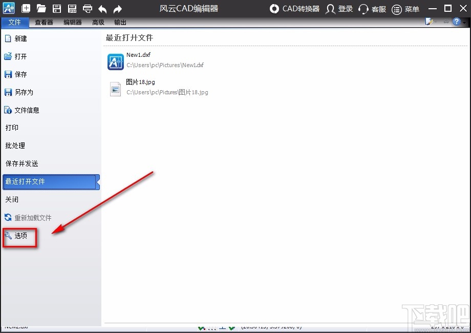 2.接着就会看到下图所示的界面,我们在界面左侧找到“选项”按钮,点击该按钮进入到选项页面。