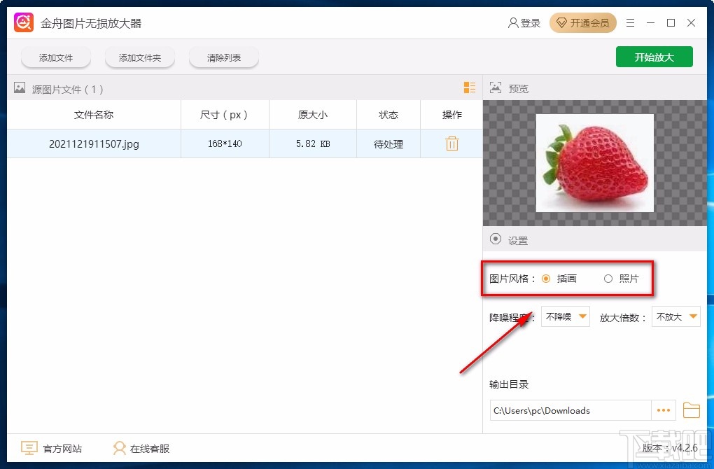 金舟图片无损放大器是一款相当不错的图片放大软件,该软件拥有清爽简单的操作界面,能够帮助用户放大图片,而且还可以对图片进行降噪处理。我们在日常生活中,有时候需要查看图片上的某些细节,这时候就需要放大图片。但是有很多图片放大软件将图片放大后会影响图片的质量,这样反而会影响我们观看图片的内容,而这款软件是一款图片无损放大软件,可以让放大后的图片保持清晰。那么接下来小编就给大家详细介绍一下金舟图片无损放大器放大图片的具体操作方法,有需要的朋友可以看一看。