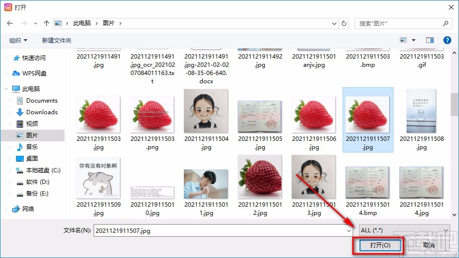 2.接着在文件添加页面中,我们将需要放大的图片选中,再点击页面右下角的“打开”按钮即可。