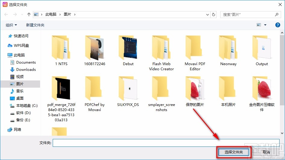 7.接下来界面上就会出现一个文件保存路径选择页面,我们在页面中选中文件的保存位置,再点击页面右下角的“选择文件夹”按钮即可。